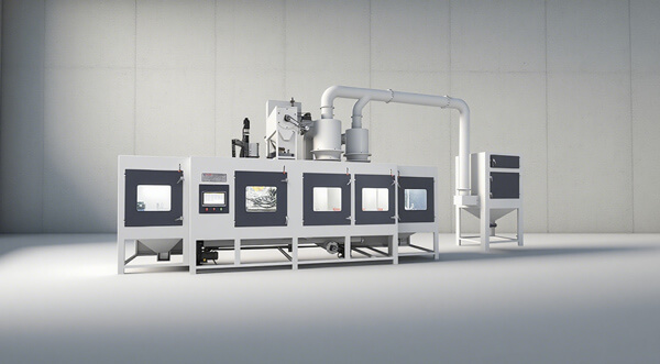 喷洗作用主要是对工件表面进行高速喷丸或喷砂/喷丸清理。
